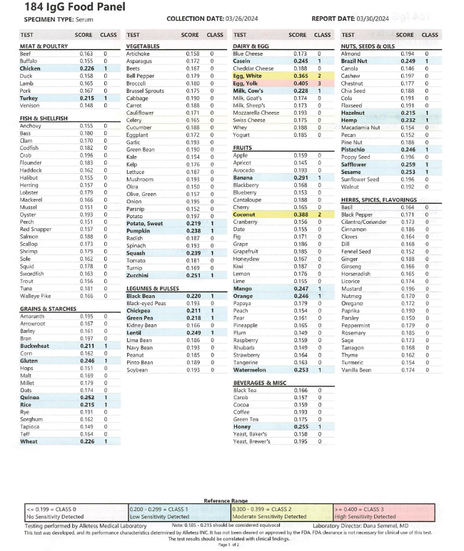 IgG FoodMap 96 Alimentos